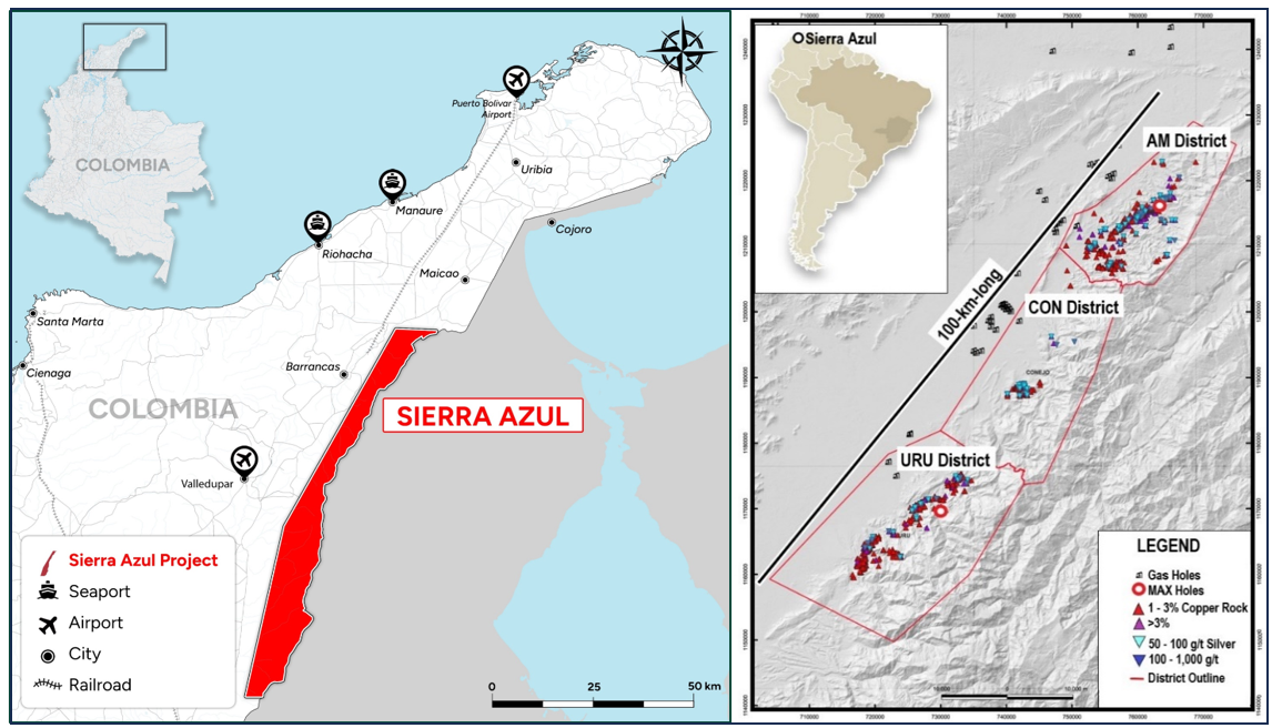 Sierra Azul Copper Silver in Colombia, sits along the Colombian portion of the world's largest producing copper belt (Andean belt), with world-class infrastructure and the presence of global majors (Glencore and Chevron). Fully funded by global miner Freeport-McMoRan (NYSE: FCX) relating to rights to earn up to 80% by funding $50 million of accumulated expenditures. Backed by support of Freeport-McMoRan, the Max team views as validation of the geological and mining potential of Sierra Azul. The 2026 exploration season is well underway.