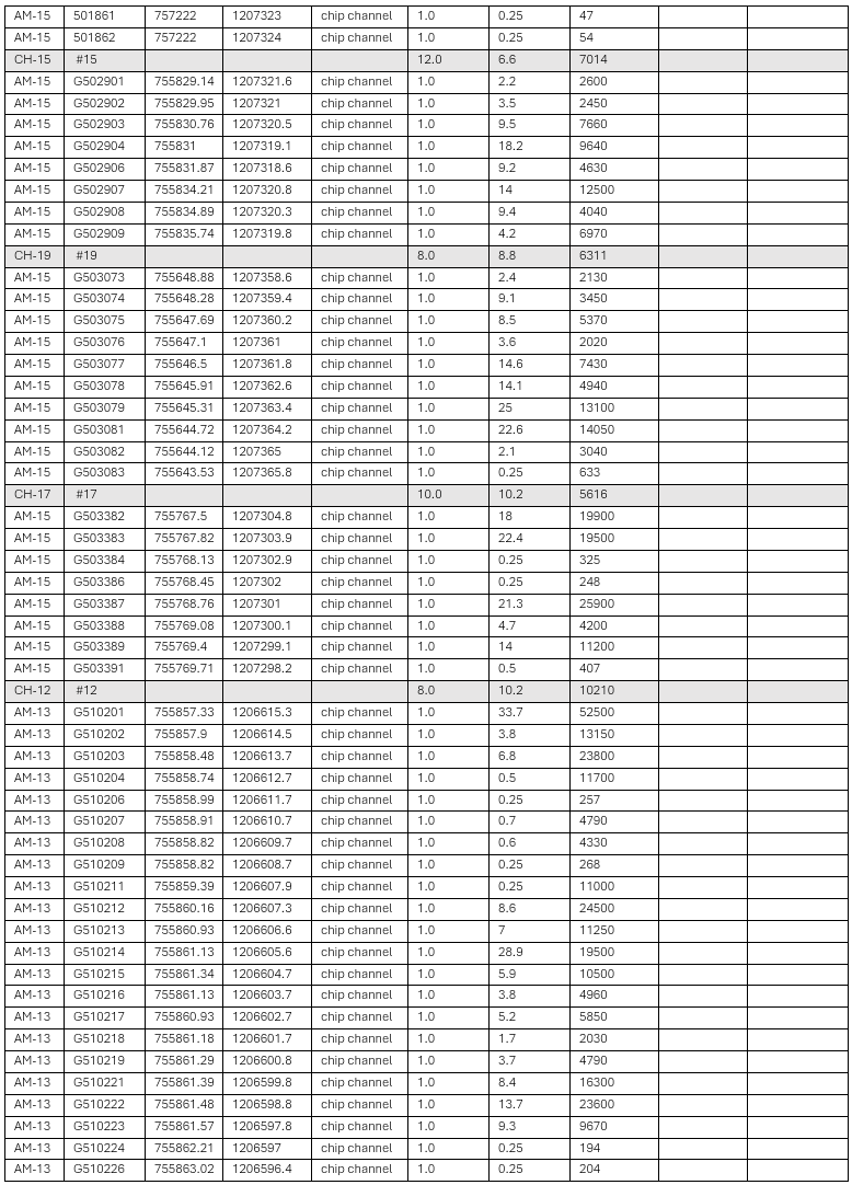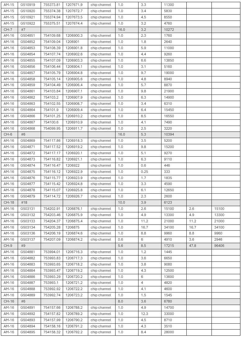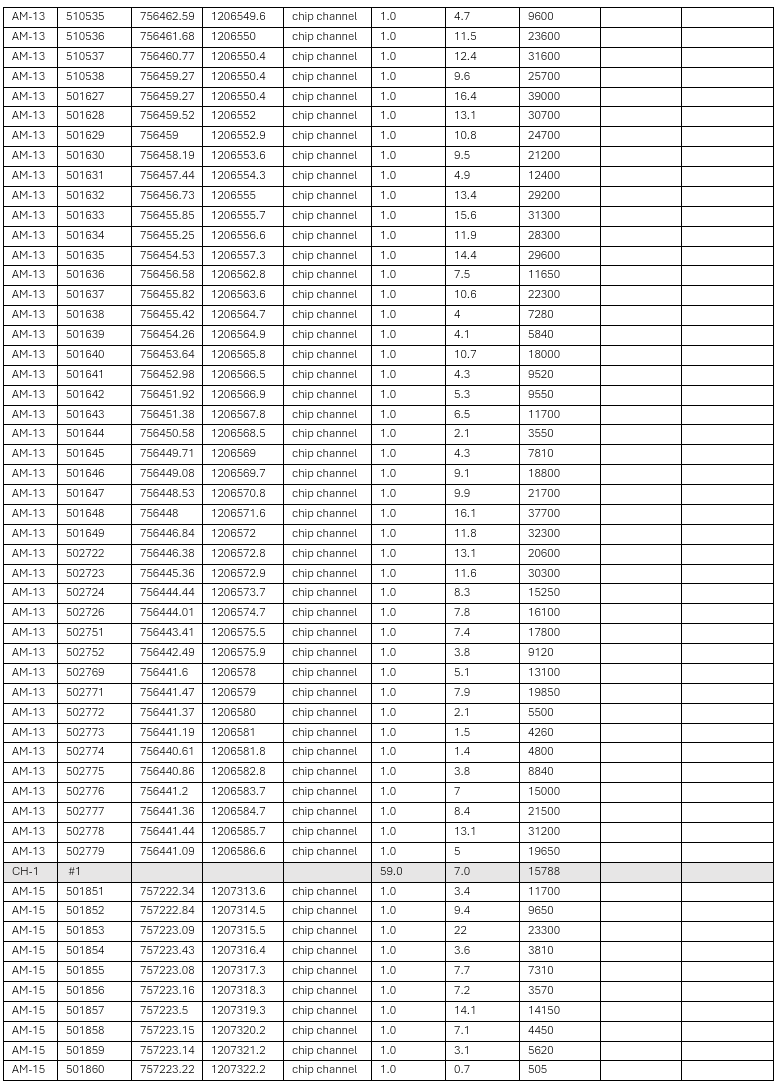 Table 1: Highlight channels combined with previous results. Refer to Appendix 1 for complete sample intervals.
