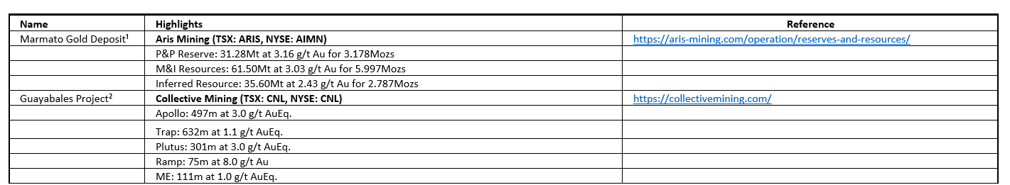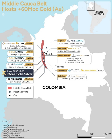 Max advises investors that the gold mineralization at the Marmato gold deposit and the Apollo porphyry zone may not necessarily by indicative of similar mineralization at the Mora Property. Max further advises the QP has been unable to verify the information on Marmato and Guayabales and that the information is not necessarily indicative to the mineralization on the Mora Property.